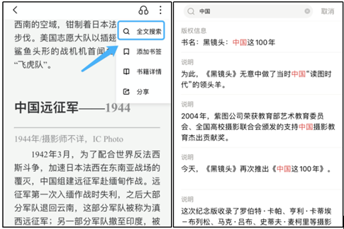 02全文检索:轻点屏幕唤出菜单后,右上角点击【全文搜索】 -输入关键词