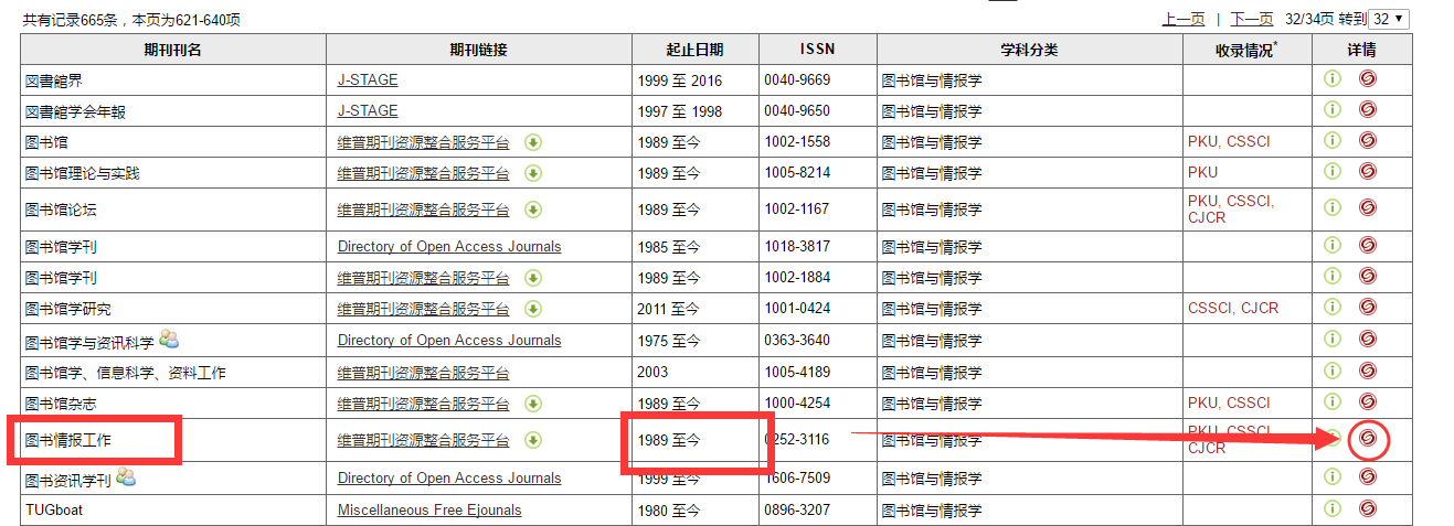 以下为检索结果。点击红色圆圈内的图标即可查看数据库详细信息。