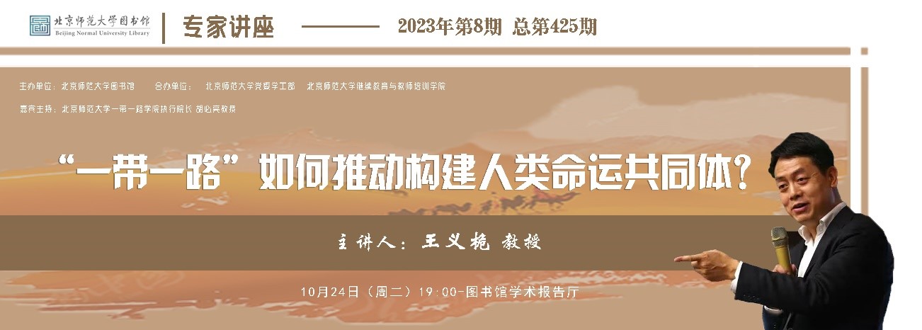 发布日期:16/10/2023 值此2023年“一带一路”倡议提出10周年之际, 多维度阐述“一带一路”如何推动构建人类命运共同体? 10月24日(周二)19:00, 特邀中国人民大学王义桅教授主讲,敬请关注! *详细信息请参阅《专家讲座》专栏(校园网内访问)