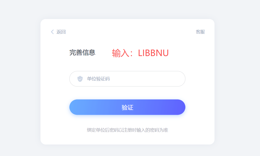 3.单位验证码输入:LIBBNU(注意需要是大写)