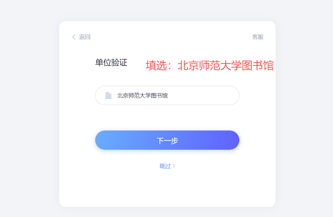 2.单位UC码/单位名称处,填选:北京师范大学图书馆