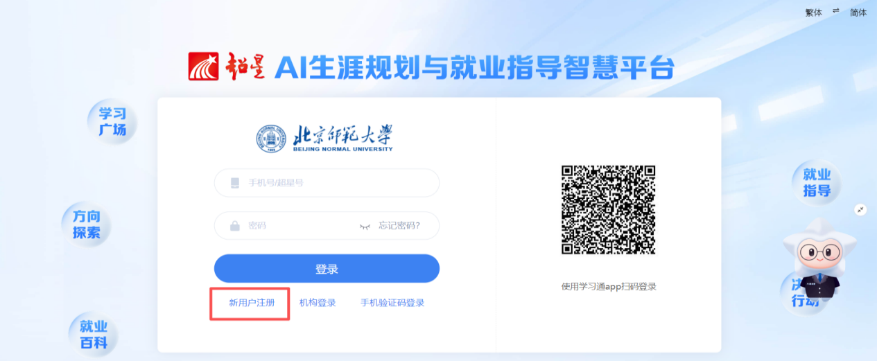 AI生涯规划与就业指导智慧平台,融合AI科技、赋能生涯规划与就业指导全流程。平台包括“学习广场”“方向探索”“就业百科”“决策行动”“就业指导”等栏目,力求为我校广大学子提供全周期、精准化的就业资源服务。